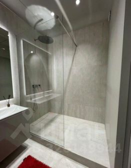 в ванной комнате: душевая кабина, стиральная машина;