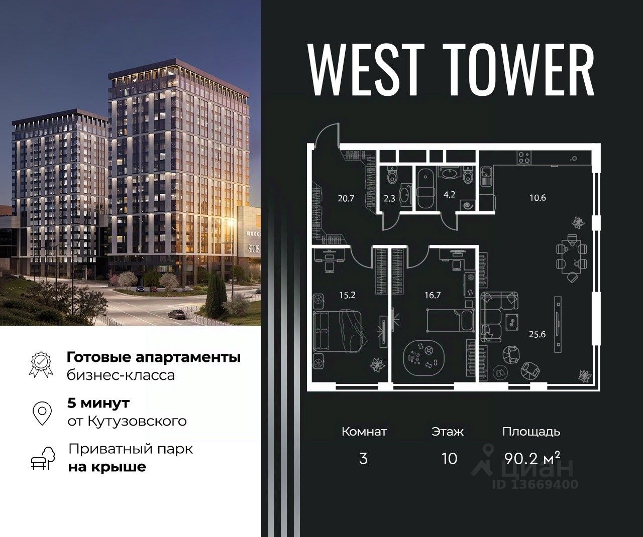 Продаются апартаменты в многофункциональном комплексе бизнес-класса West Tower в ЗАО.