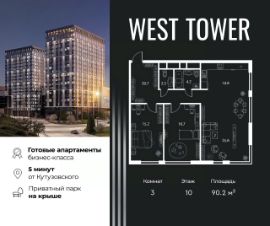3 - комнатные апартаменты в West Tower это идеальные апартаменты для индивидуальности. Простор открытой планировки, в сочетании с инфраструктурой комплекса и отличной экологией вокруг дают отличную основу для покорения вершин. Здесь только самое необходимое. Эти апартаменты больше других подобных подходят для зонирования. Можно легко отделить хоум офис от кухни, а пространство для приема гостей от зоны отдыха.