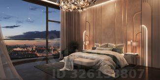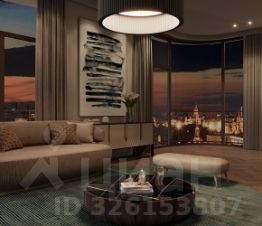 Единственная квартира в доме с отделкой и мебелью, её площадь 201,5 кв. м. Дизайн пространства разработало международное архитектурное бюро Олега Клодта. Продуманная планировка разделена на две зоны. В парадной части расположена кухня-гостиная площадью 85 кв. м, гостевой санузлел и прихожая, а в приватной - три спальни. Из панорамных окон просторной кухни-гостиной открываются впечатляющие прямые виды на Кремль, храм Христа Спасителя и Москва-Сити. Панорамные окна спален выходят в тихий приватный двор-парк с живописным ландшафтным дизайном, фонтаном и ручьём. В каждой спальне свой санузел и гардеробная.