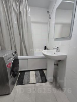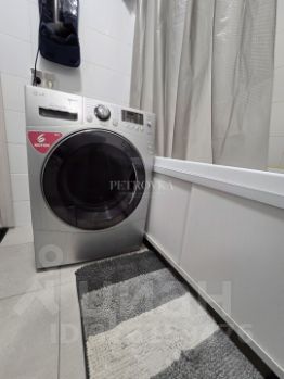Просторная ванная комната . Стиральная машина LG.