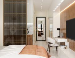 Если вам нужна Уютная студия с дизайнерским ремонтом, то вы по адресу. Расположена в 7 минутах от метро Шелепиха в ЖК Левел Причальный на 5 этаже .