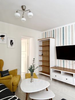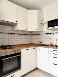 Жилая площадь составляет комфортные 25 квадратных метров, а кухня занимает 5 квадратных метров, предоставляя достаточно места для кулинарного творчества и семейных ужинов. Квартира может похвастаться качественным евроремонтом, создающим атмосферу уюта и тепла, а также совмещённым санузлом, что является удобным решением для современного жителя мегаполиса.