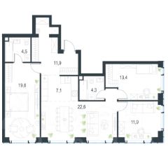 В квартире 4 комнаты, что позволяет спланировать три спальни и кухню-гостиную. Также предусмотрены две ванные комнаты. Квартира сдаётся без отделки, возведены стены - white box - у вас есть уникальная возможность воплотить в жизнь собственные дизайнерские решения!