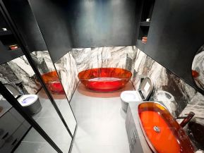 — два санузла: дизайнерская стеклянная ванна длиной 180 см и отдельная душевая;
