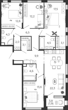 Продаётся 4-комнатная квартира в строящемся доме (Корпус 2 (2 очередь 6 этап)), срок сдачи: I-кв. 2026, общей площадью 118.2 кв.м., на 12 этаже. Это город в городе, который не подстраивается под старые рамки, а задает новую планку и стандарт жилого района в России.