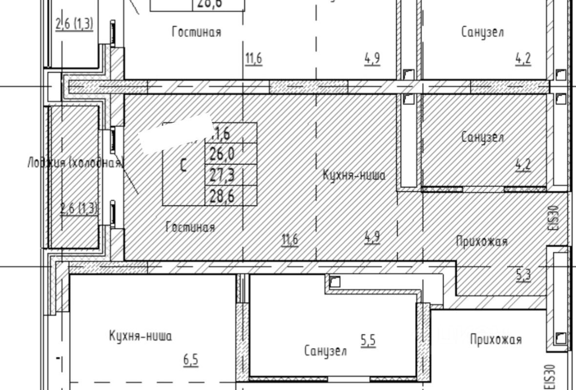28,6 м²