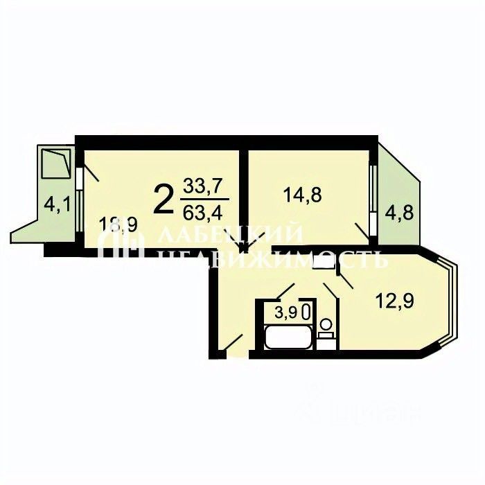 ПРОСТОРНАЯ 2-КОМНАТНАЯ КВАРТИРА 63,4 М² С ДВУМЯ ЛОДЖИЯМИ И ВЫХОДОМ В ПАРК