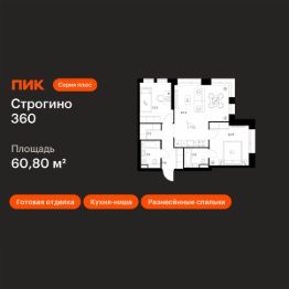 Новостройка! Продается 2-комн. кв-ра площадью 60,8 кв.м, (Корпус 1.2, Секция 1) 2 этаж 30-этажного дома в Строгино 360 от ПИК. Проект, где каждый день будет наполнен гармонией и новыми возможностями, где можно найти идеальный баланс между энергией большого города и спокойствием природного окружения. Это настоящая экосистема в окружении четырех парков и набережной Москвы-реки, где современная архитектура, умные технологии и продуманная среда создают новое качество жизни.