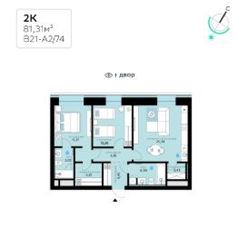 В продаже — двухкомнатная квартира, общей площадью 81,31 кв. м. Квартира расположена на тринадцатом этаже тринадцатиэтажной секции корпуса класса Адвансд в новом районе СберСити, который строит Сбер. Дом находится на второй береговой линии Москвы-реки.