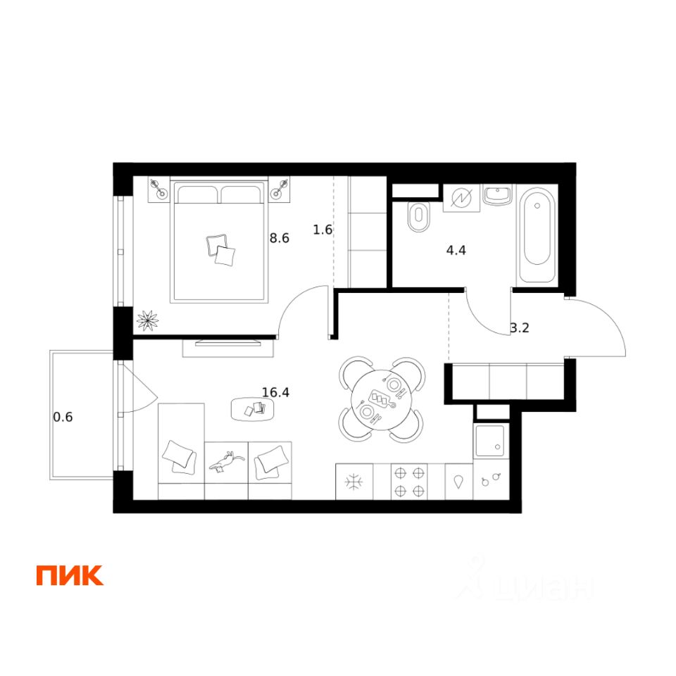 Продаётся 1-комн. квартира площадью 34,8 кв.м на 4 этаже 29 этажного дома (Корпус 2.1, Секция 1) проекта ПИК Москворечье. Светлый просторный подъезд на уровне земли, функциональная планировка, большие окна, c отделкой.