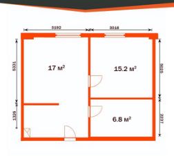 Общая площадь: 44,8 кв.м. С/У: 6,8 кв.м. Высота потолков 3.02 м., панорамные окна в пол. Качественный white box.