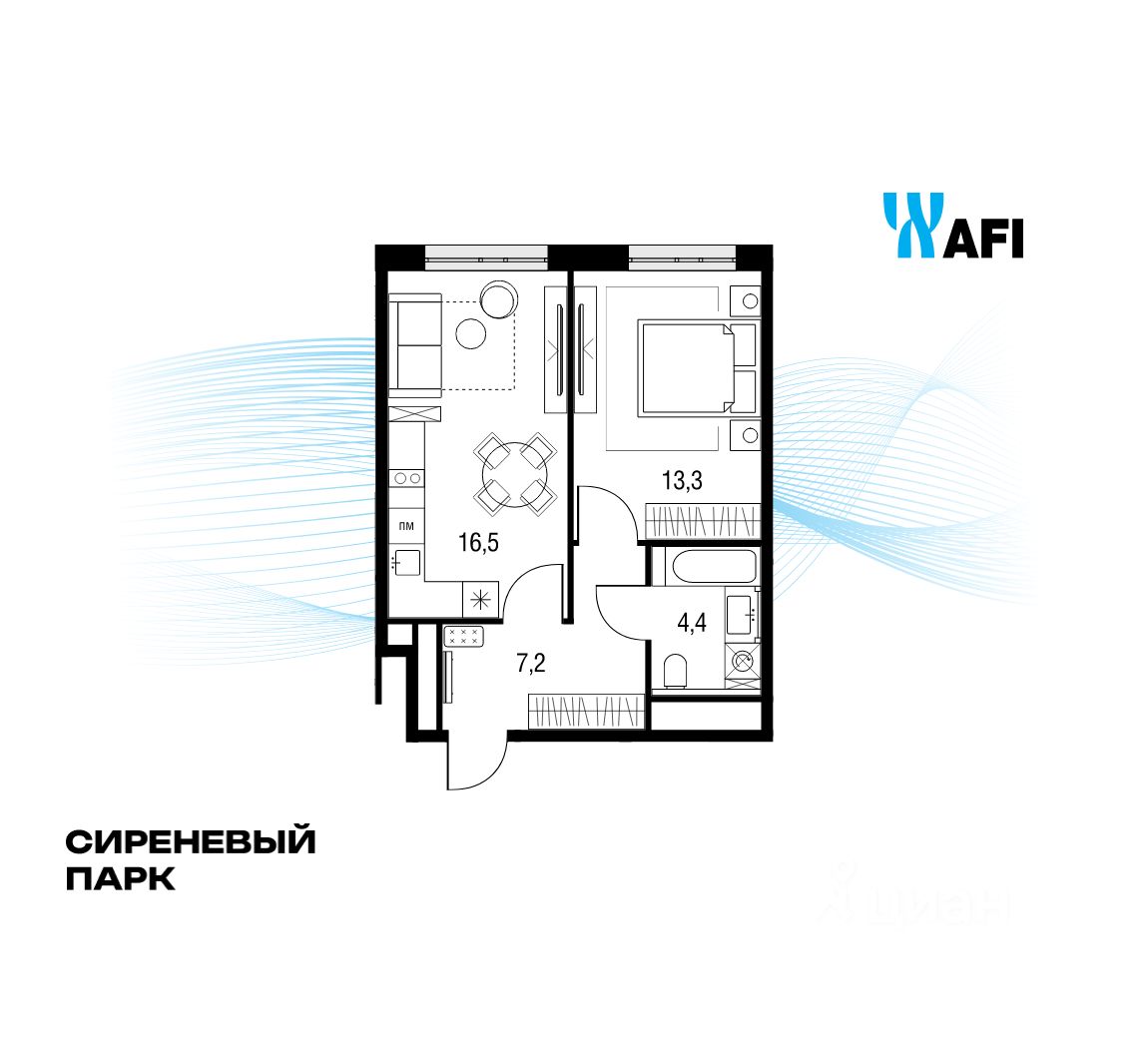 Продаётся просторная 1-комнатная квартира общей площадью 41.3 м² на 23 этаже в новом жилом комплексе "Сиреневый парк", расположенном в Восточном административном округе Москвы на улице Тагильская. Всего 10 минут ходьбы от станции метро "Бульвар Рокоссовского" и одноимённой платформы МЦК.