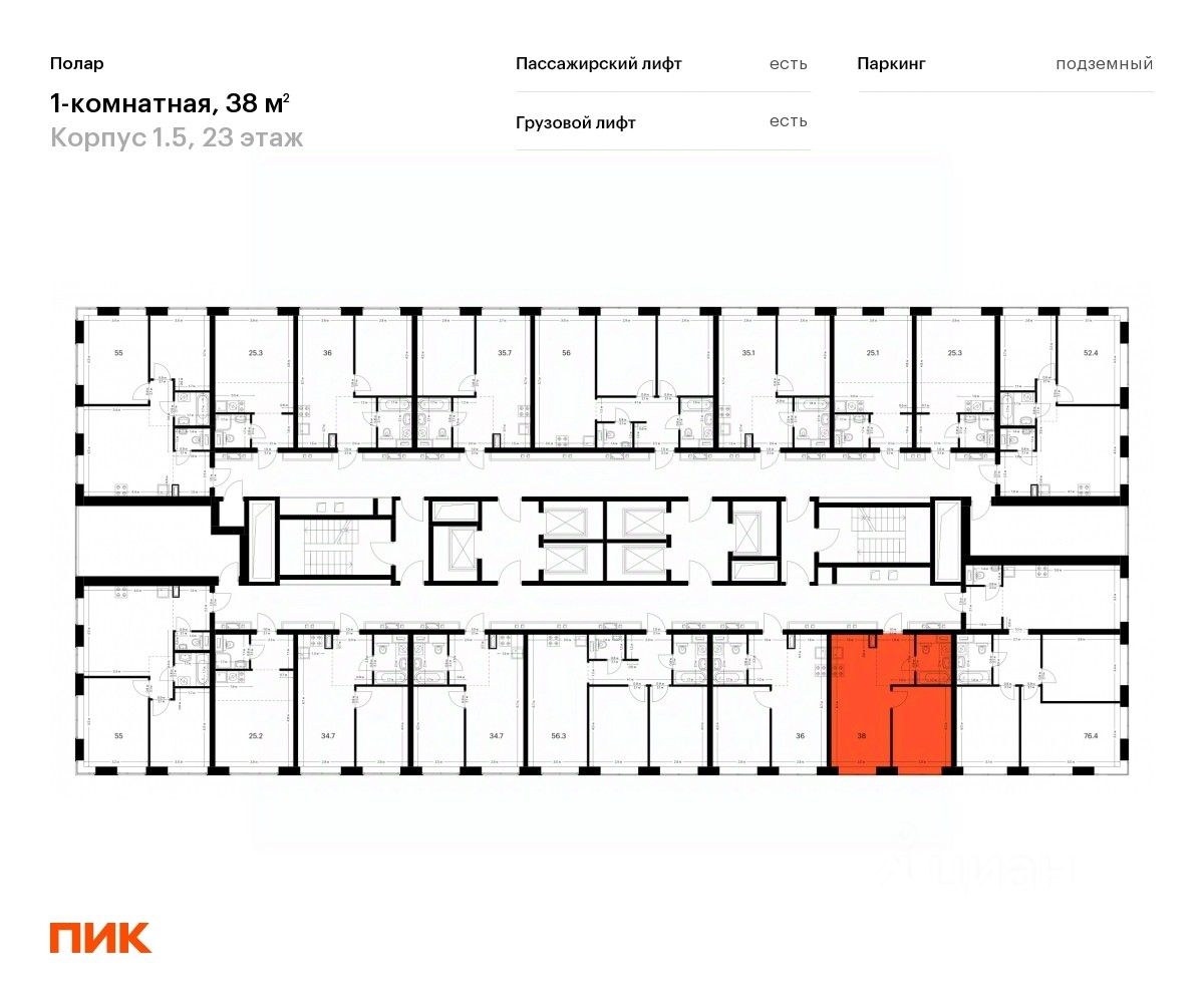 Продаётся 1-комн. квартира площадью 38 кв.м на 23 этаже 50 этажного дома (Корпус 1.5, Секция 2) проекта ПИК Полар. Светлый просторный подъезд на уровне земли, функциональная планировка, большие окна, предчистовая отделка.