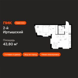 Продаётся 1-комн. квартира площадью 43,8 кв.м на 25 этаже 43 этажного дома (Корпус 1.1, Секция 1) проекта ПИК 2-й Иртышский. Светлый просторный подъезд на уровне земли, функциональная планировка, большие окна, c отделкой.