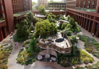 Двор разделен на 4 зоны разных эмоций и действий, которые пересечены и соединены веерными прогулочными маршрутами: