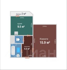 9,5 м²