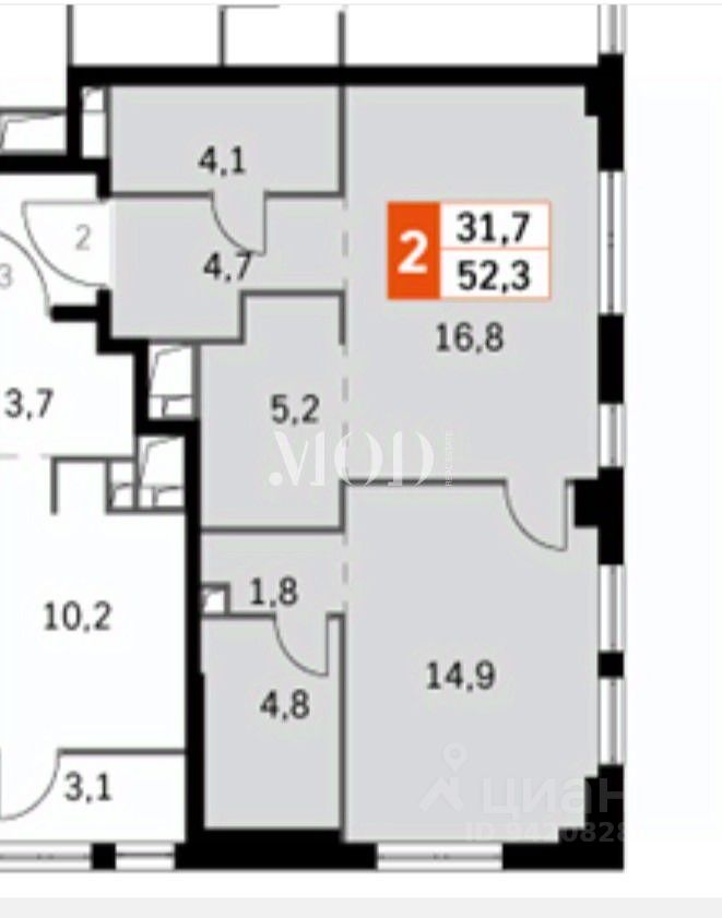 Площадь: 52,3 м