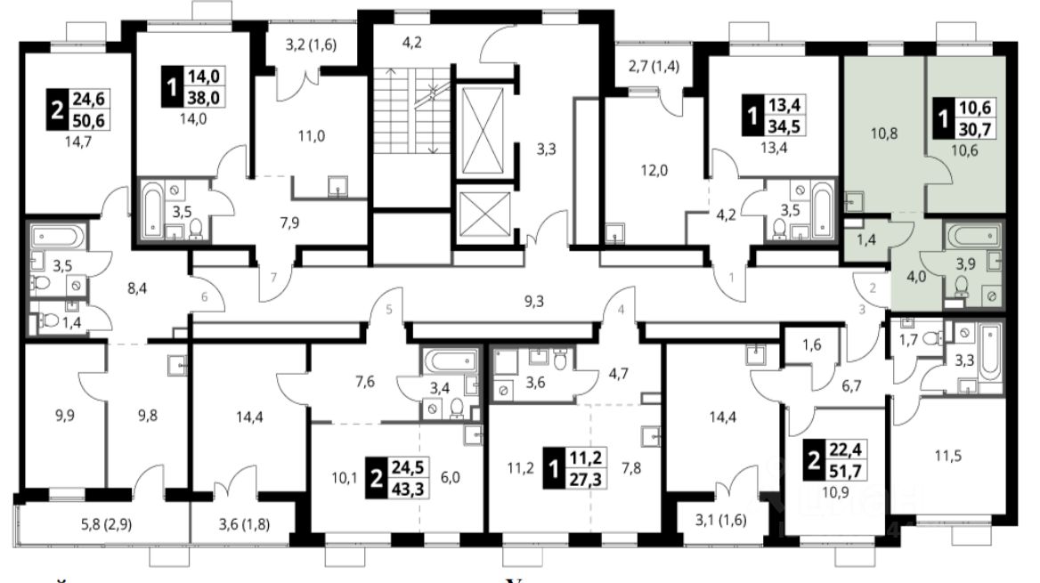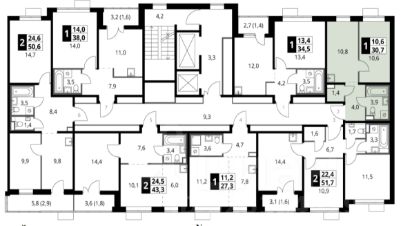 Квартира располагается в 1 корпусе, 6 секция, 6 подъезд.