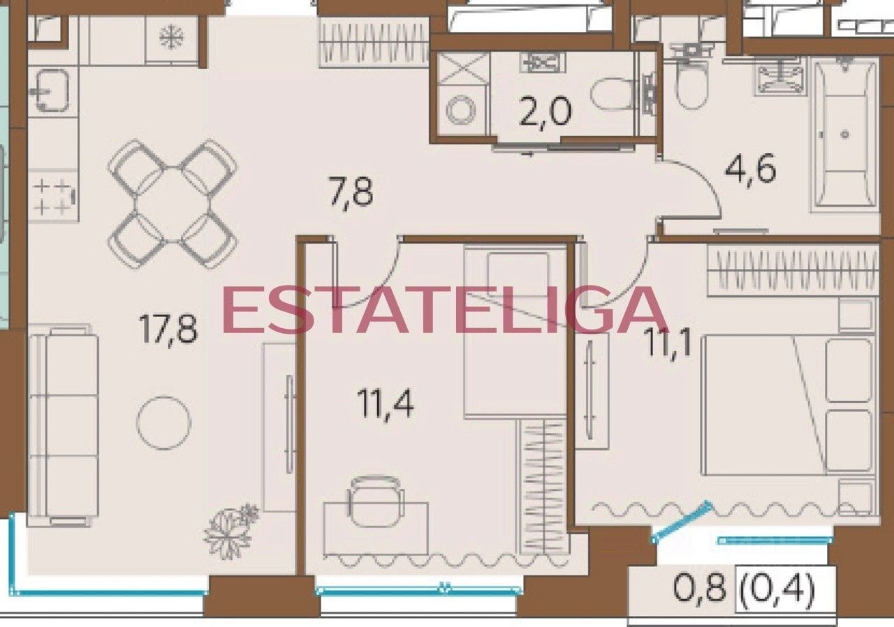 Id 57498. УЮТНАЯ ДВУШКА В 6 ОСТРОВЕ С ЛОДЖИЕЙ ПРЯМО ВО ДВОР!