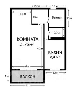 Просторная комната 21,75 м² — можно переоборудовать под 2 комнаты или кабинет.