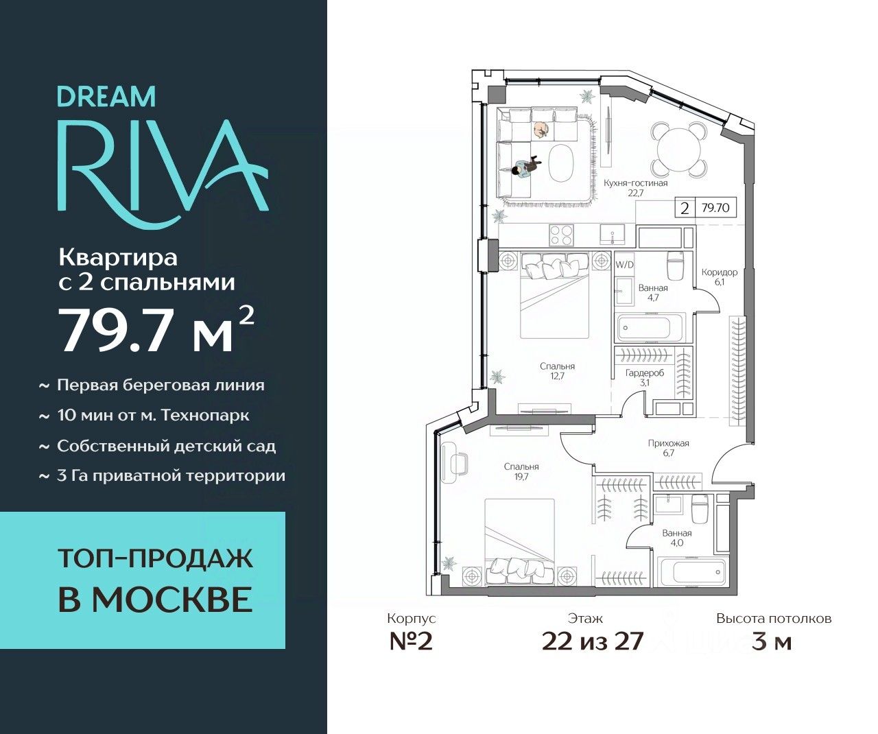 Общая площадь: 79.7 кв.м.