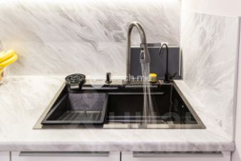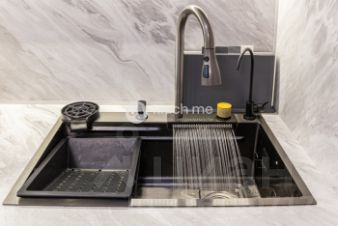• Кухня: Современный гарнитур с посудомоечной машиной, духовым шкафом (с функцией СВЧ) и эксклюзивной мойкой с "водопадом" и омывателем стаканов.