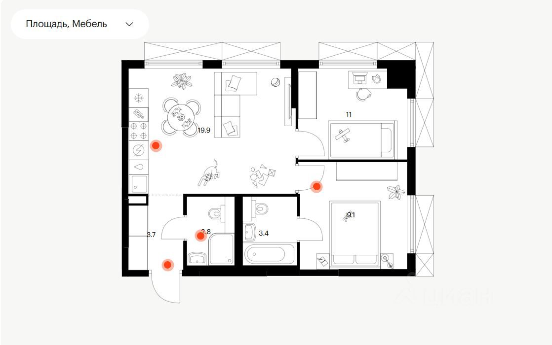Евротрешка с панорамными видами на Измайловский парк в новом современном ЖК комфорт-класса.