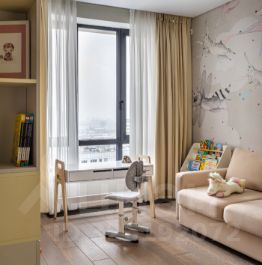 Квартира с дизайнерским ремонтом. Кухня-гостиная, спальня, детская, два совмещенных с/у, балкон.
