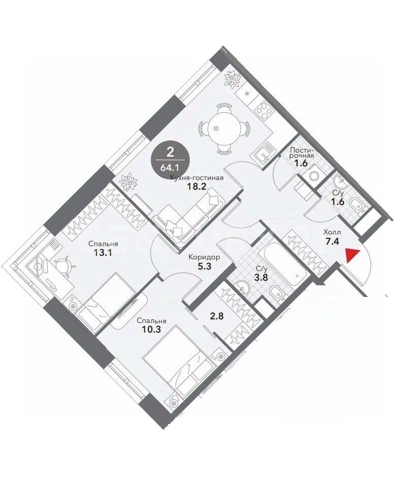 Предлагаем шикарные 2- комнатые апартаменты , с большой кухней-гостинной и 2 санузлами . В 1 комнате угловое остекление , во второй комнате есть гардеробная !