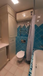 В квартире сносили все стены (дом на балках, нет несущих стен и поэтому конструкция это позволяет делать законно), устанавливали новые стены из полого кирпича и был выполнен капитальный ремонт из качественных натуральных материалов (на полу цельный паркет с индивидуальным рисунком и плитка, на стенах декоративная штукатурка и мозаика). В ванной комнате тёплый пол и натяжной потолок. Встроенная мебель (шкафы, кухня и ванная) остаётся, остальное уедет. Вся мебель изготавливалась на заказ под индивидуальные размеры.