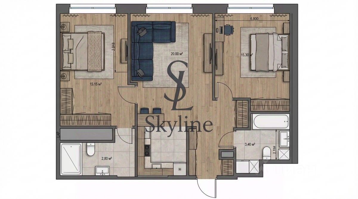 Квартира с двумя спальнями в квартале бизнес-класса Сердце столицы на набережной Москвы-реки. Квартира площадью 72 м² откуда открывается прямой вид во внутренний парк и набережную Москвы-реки. Установлена система индивидуального кондиционирования.