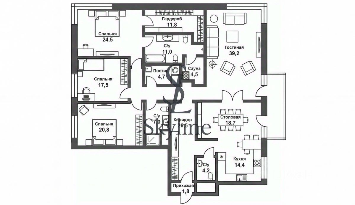 функциональную постирочную, дополнительные гардеробную и кладовую,