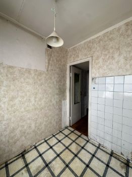 Квартира без ремонта. Планировка включает две комнаты, кухню и один санузел, а также есть балкон.