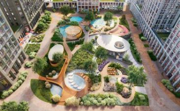 В ландшафтном дворе-парке комплекса расположены крытые зоны для спокойного времяпровождения, места для активного отдыха и спорта, коворкинг, соседский комьюнити-центр. Во дворах выполнено многоуровневое благоустройство с индивидуальными ландшафтными решениями. Для владельцев автомобилей предусмотрен подземный паркинг с мойкой колес на въезде, усилением сотовой связи и келлерами.