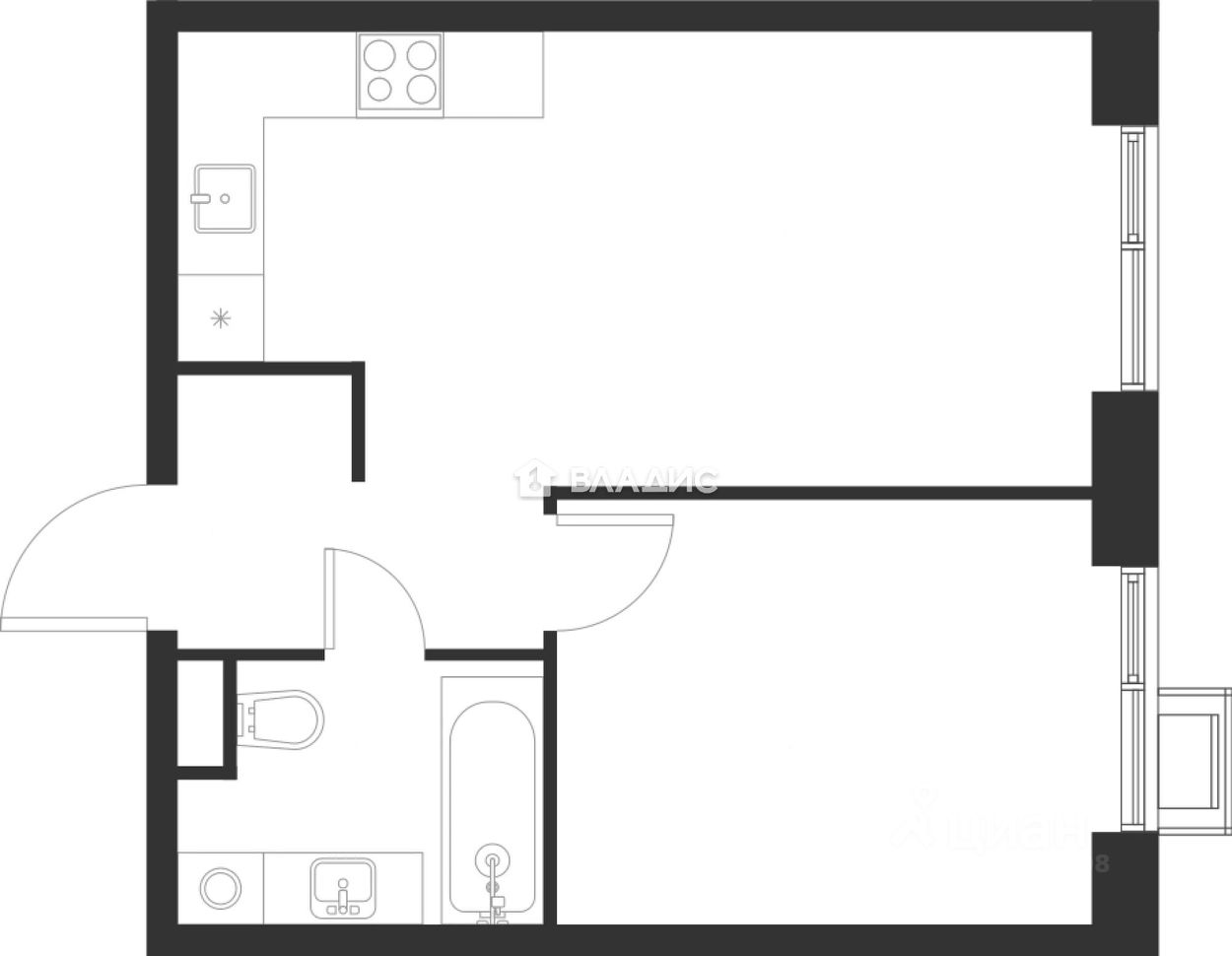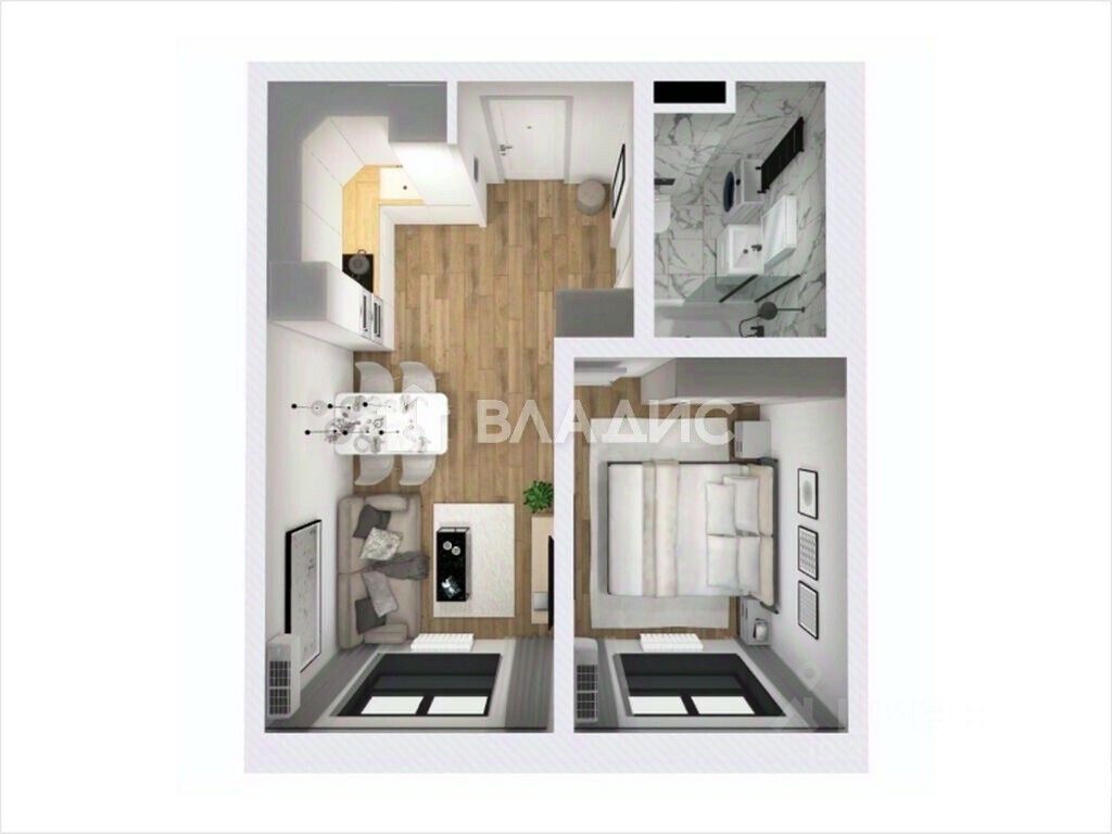 Общая площадь: 36.9 кв.м (жилая — 22.3 кв.м, кухня — 6.6 кв.м).