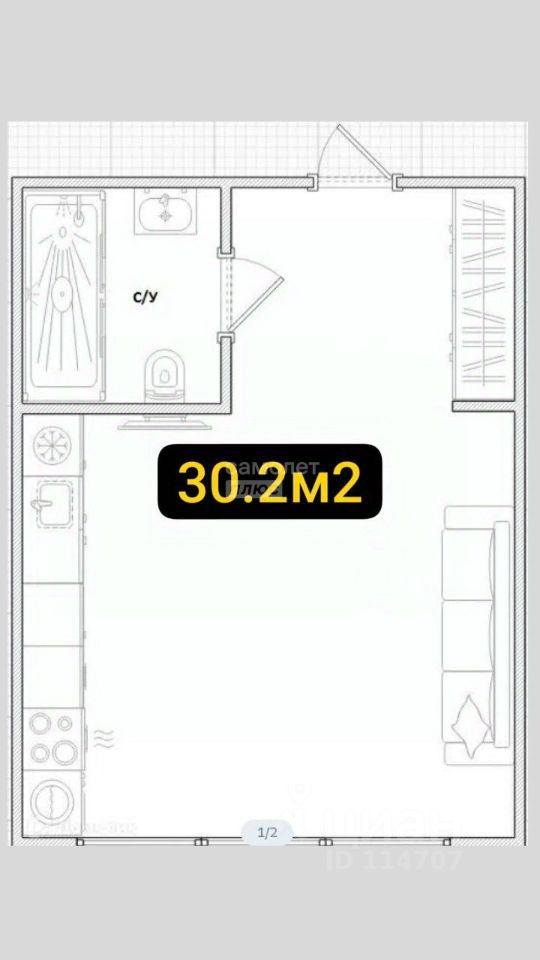 Арт. 129087360 Самая большая студия в ЖК "Символ"! Качественный авторский евроремонт по индивидуальному проекту.