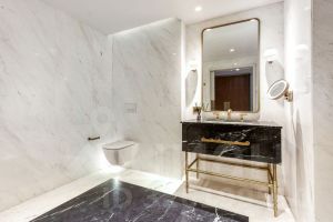 Просторная резиденция, спальная зона большая кровать 2х2,4. Гостиная зона со встроенным телевизором в нишу и столик с двумя креслами. Есть кухонный шкаф и холодильник. Просторный холл со встроенным большим гардеробным шкафом, Места для хранения. Большая ванная комната, большая душевая, с оригинальным решением стеклянная не прозрачная перегородка.