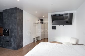 Квартира - студия с гардеробной. Видовая на Moscow City, с дизайнерским ремонтом, мебелерованная, кондиционер, бойлер, остаётся вся быт техника.