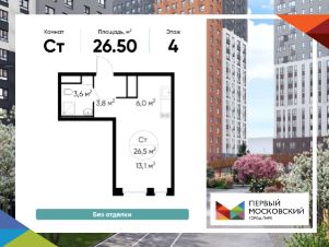 Продается квартира-студия без отделки в 9 фазе города-парка "Первый Московский".