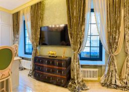 Атмосферная КВАРТИРА с восхитительным дизайнерским ремонтом в стиле отеля Costes в Париже с прекрасным видом на Храм Христа Спасителя, расположенная на пересечении ул.Остоженка/Саймоновский проезд.