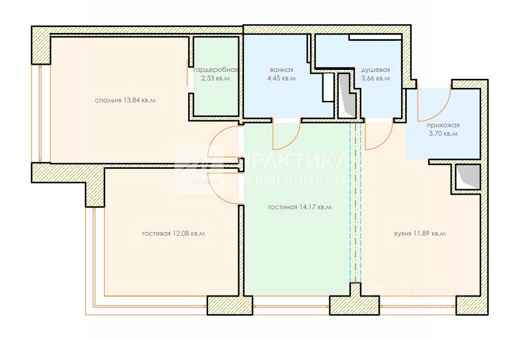 • Гостиная: вместительная и уютная для приёма гостей - 14,17 кв.м.
