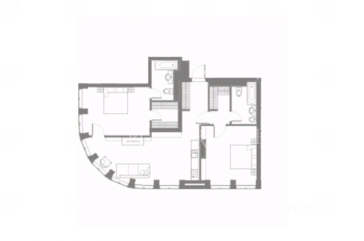 Возможно спланировать две мастер-спальни.