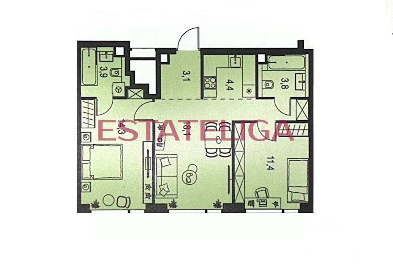 Свободная планировка, включает в себя: кухню и гостиную, которую можно совместить и получится большая зона отдыха для всей семьи. 1 изолированная комната - детская или кабинет, изолированная мастер - спальня с санузлом и 1 гостевой санузел при входе в квартиру.