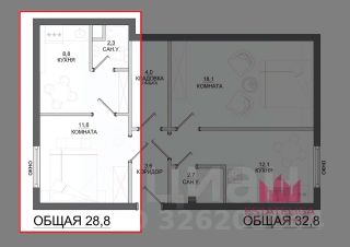 • Площадь 28,8м² с хорошей планировкой: 1 изолированная комната, просторный коридор, кухня 10м².