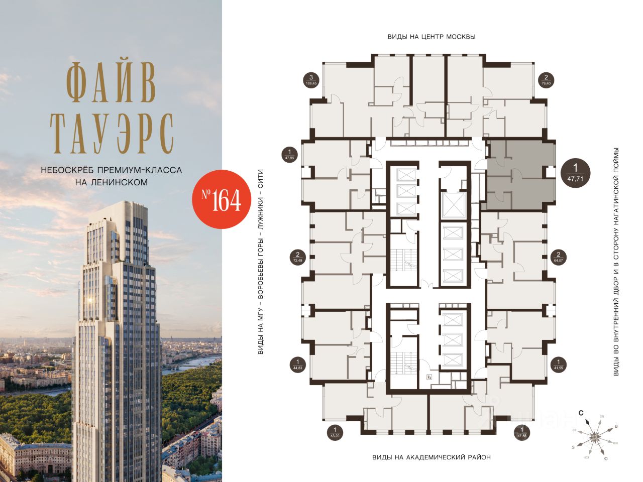 ФАЙВ ТАУЭРС — первый жилой небоскрёб на Ленинском проспекте и самый высокий дом столицы за пределами делового кластера "Москва-Сити". Премиальный небоскрёб представляет собой ультрасовременное, высокотехнологичное здание, идеальный синтез стилей культовых высоток Москвы и небоскребов Нью-Йорка и поражает воображение уникальными видами, монументальной роскошью и совершенством форм. Величественная панорама, открывающаяся из окон вашей квартиры, завораживает: легендарные сталинские высотки, шпиль главного корпуса МГУ, "Москва-Сити", спорткомплекс "Лужники".