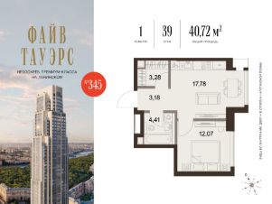 Общая площадь40,72 м²