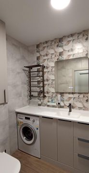 Сделан ремонт. Полностью заменена: электрика, разводка воды, сантехника (ванна, унитазы, смесители), настенная плитка и пол в ванной, пол в квартире (кварцвинил), натяжной потолок, обои. Установлены водонагреватель, защита от протечек Нептун.