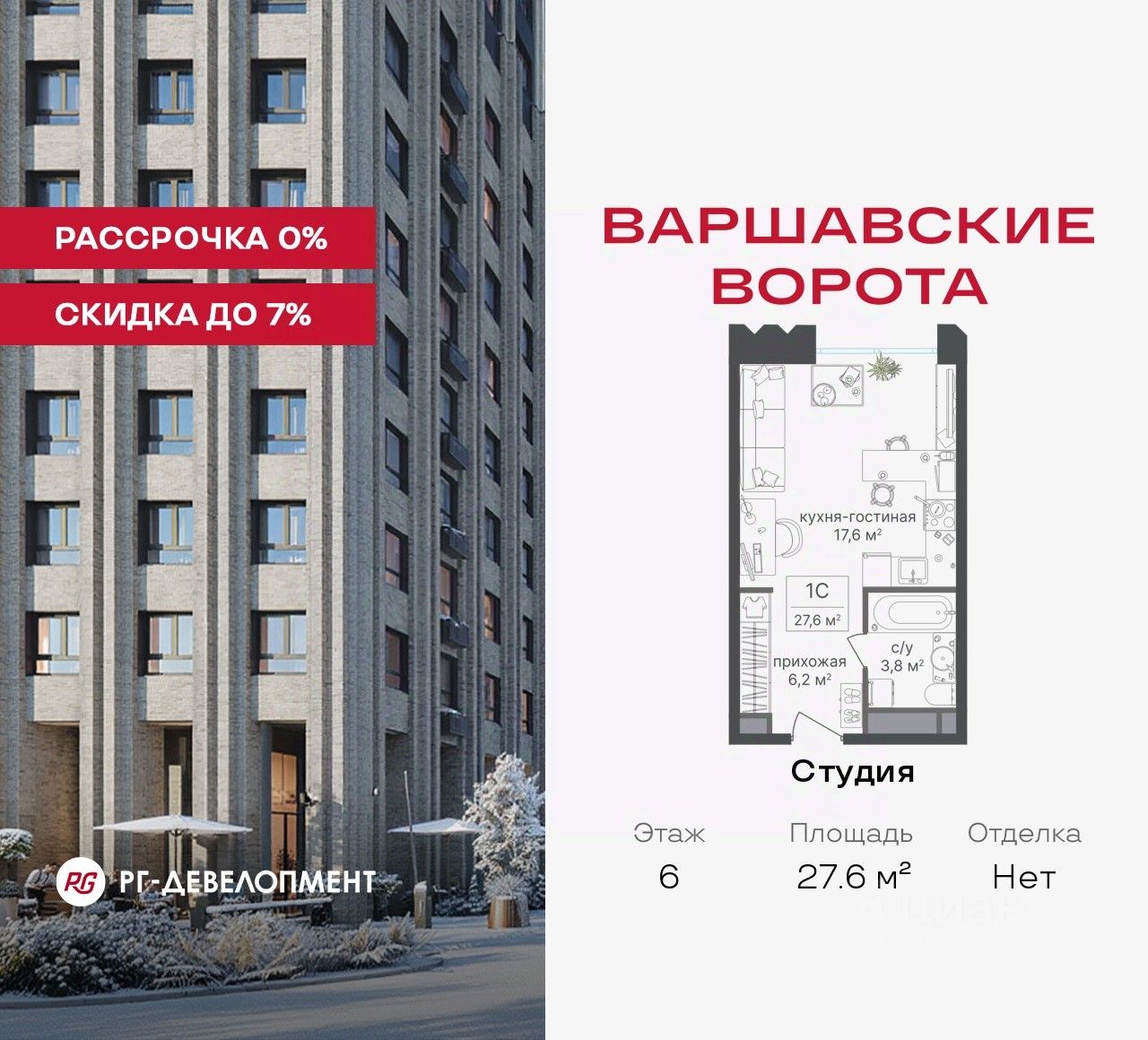 Продаётся Студия 27.6 кв.м. в МФК "Варшавские ворота" на 6-м этаже 30 этажного дома. МФК "Варшавские ворота" — это точка баланса между природой и городом, стилем и функциональностью, жизнью сегодня и устойчивым будущим.