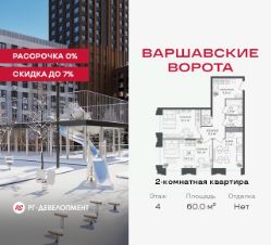 Продаётся 2-комнатная квартира 60.0 кв.м. в МФК "Варшавские ворота" на 4-м этаже 30 этажного дома. МФК "Варшавские ворота" — это точка баланса между природой и городом, стилем и функциональностью, жизнью сегодня и устойчивым будущим.